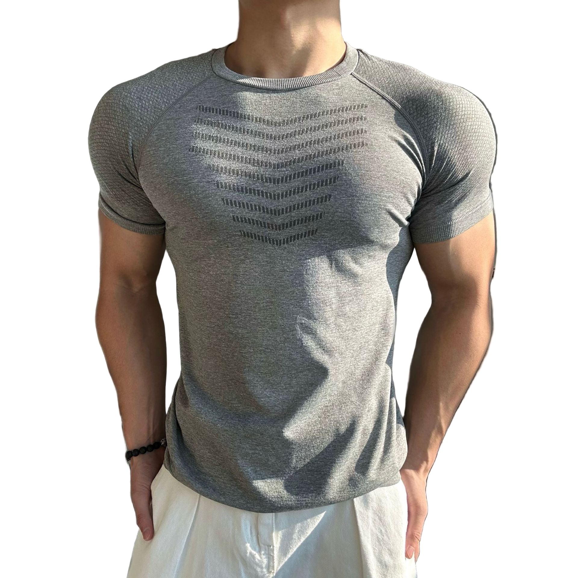 A quick-dry, elastic and breathable short-sleeve training shirt with a seamless woven pattern for a comfortable, fitted look. Designed for fitness and exercise.