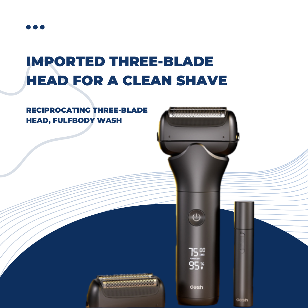 🔪 Reciprocating Three-Blade Head: Delivers a clean and close shave.
