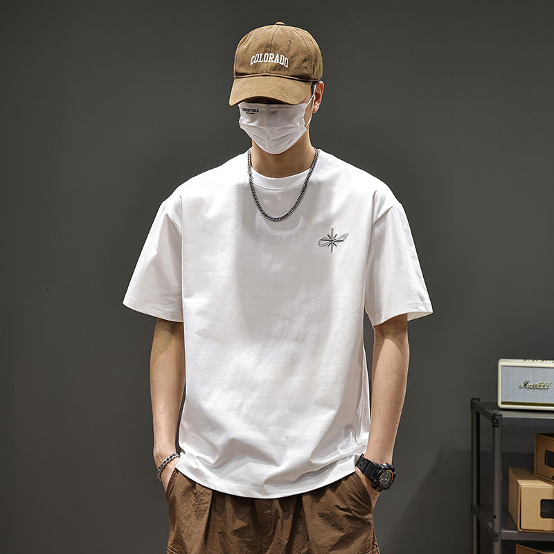 A comfortable and stylish casual half-sleeve T-shirt featuring a subtle embroidered graphic on the chest. Designed for a soft, relaxed fit, this tee is a versatile staple piece.