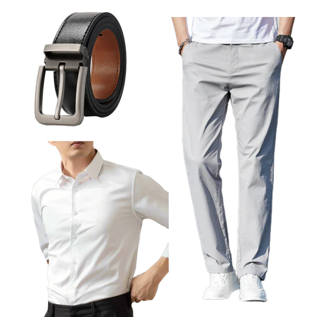 Step into the new year with polish and purpose in our "Harvest & Hustle" Formal Bundle, a collection designed for modern elegance. This three-piece set is built for success and comfort. The crisp Non-Iron White Shirt gives you a sharp, clean look without the hassle, so you can spend more time celebrating and less time preparing. The Casual Business Straight-Leg Slim-Fit Trousers offer a sleek, tailored silhouette that moves with you, providing all-day comfort without sacrificing style. Complete the look with the versatile PrimeCraft Reversible Leather Belt, a two-in-one accessory that effortlessly switches between black and brown to match any outfit. This bundle is the ultimate choice for welcoming Enkutatash with confidence and a refined sense of style.