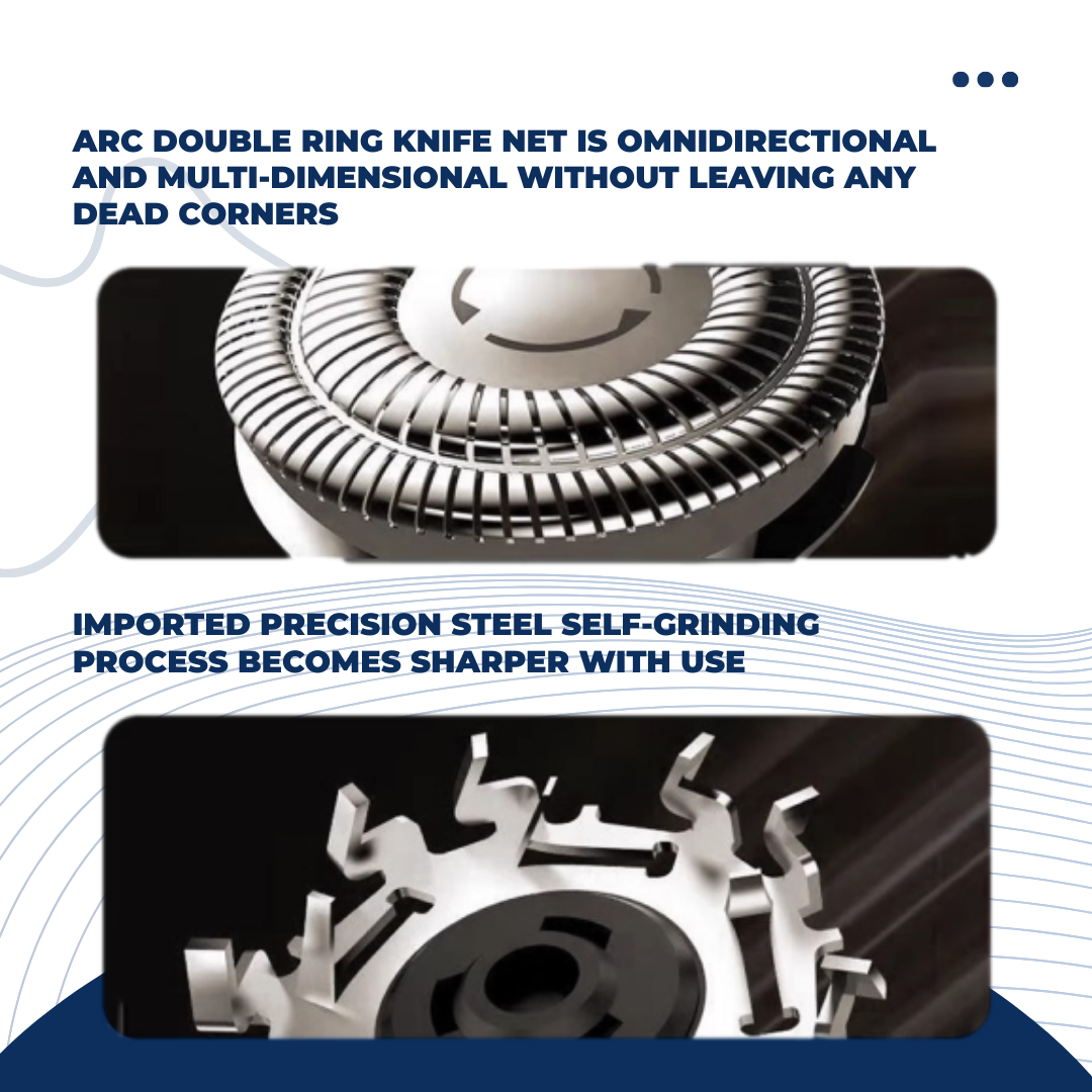 🔄 Omnidirectional Shaving: Curved double-ring knife net for an all-around shave.