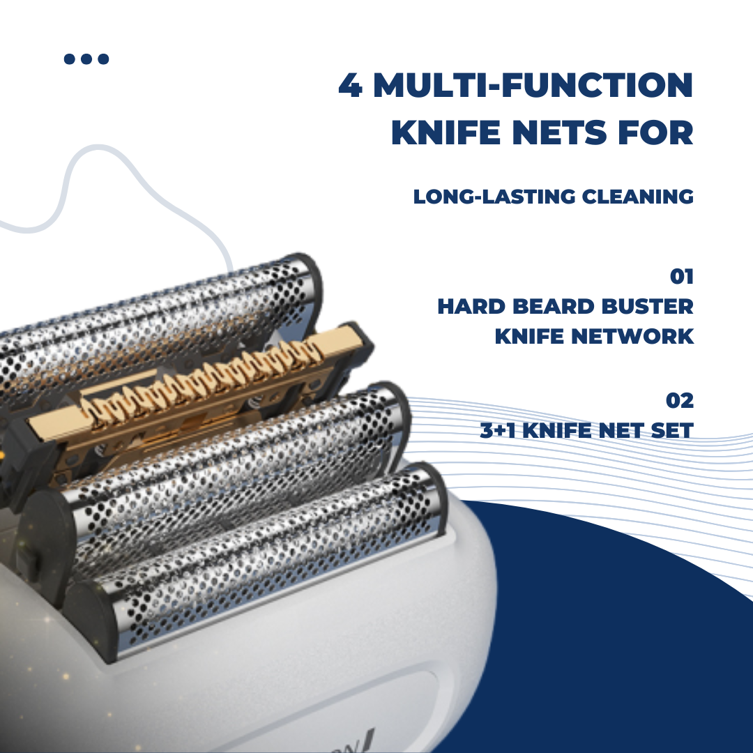 🔄 4 Multi-Function Knife Nets: Ensures long-lasting, clean shaving.