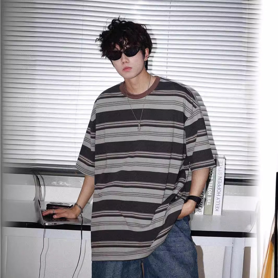 This loose-fit, short-sleeved tee features a bold stripe pattern, creating a relaxed, modern aesthetic. The versatile design is easy to pair with various bottoms for an effortless, casual look.