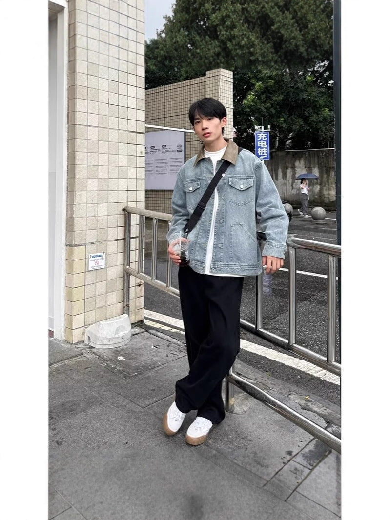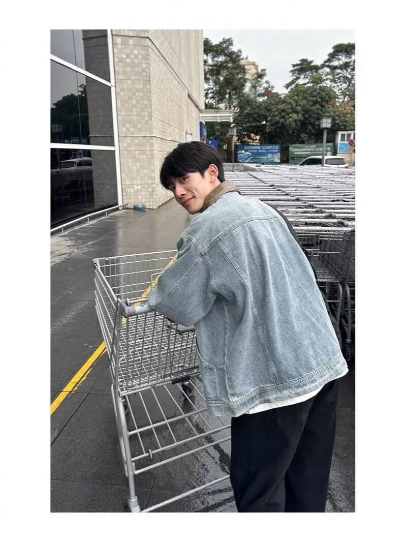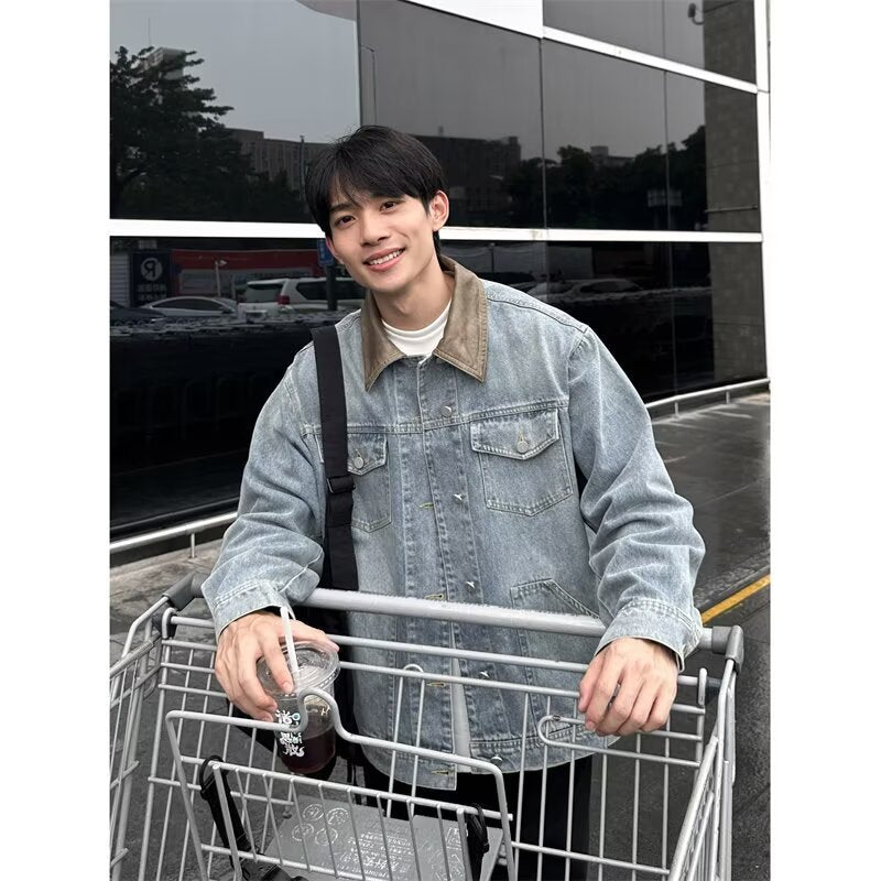 A heavy-duty, retro-inspired jacket featuring a classic turn-down collar and distressed button-front styling. This versatile outerwear piece is designed for a relaxed, comfortable fit and features a washed finish for a well-worn, authentic look. It's a foundational layering piece for any casual wardrobe.