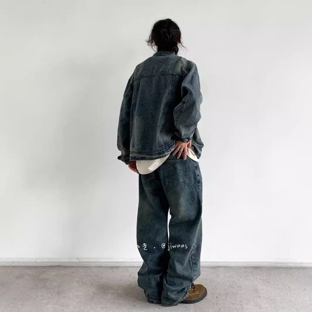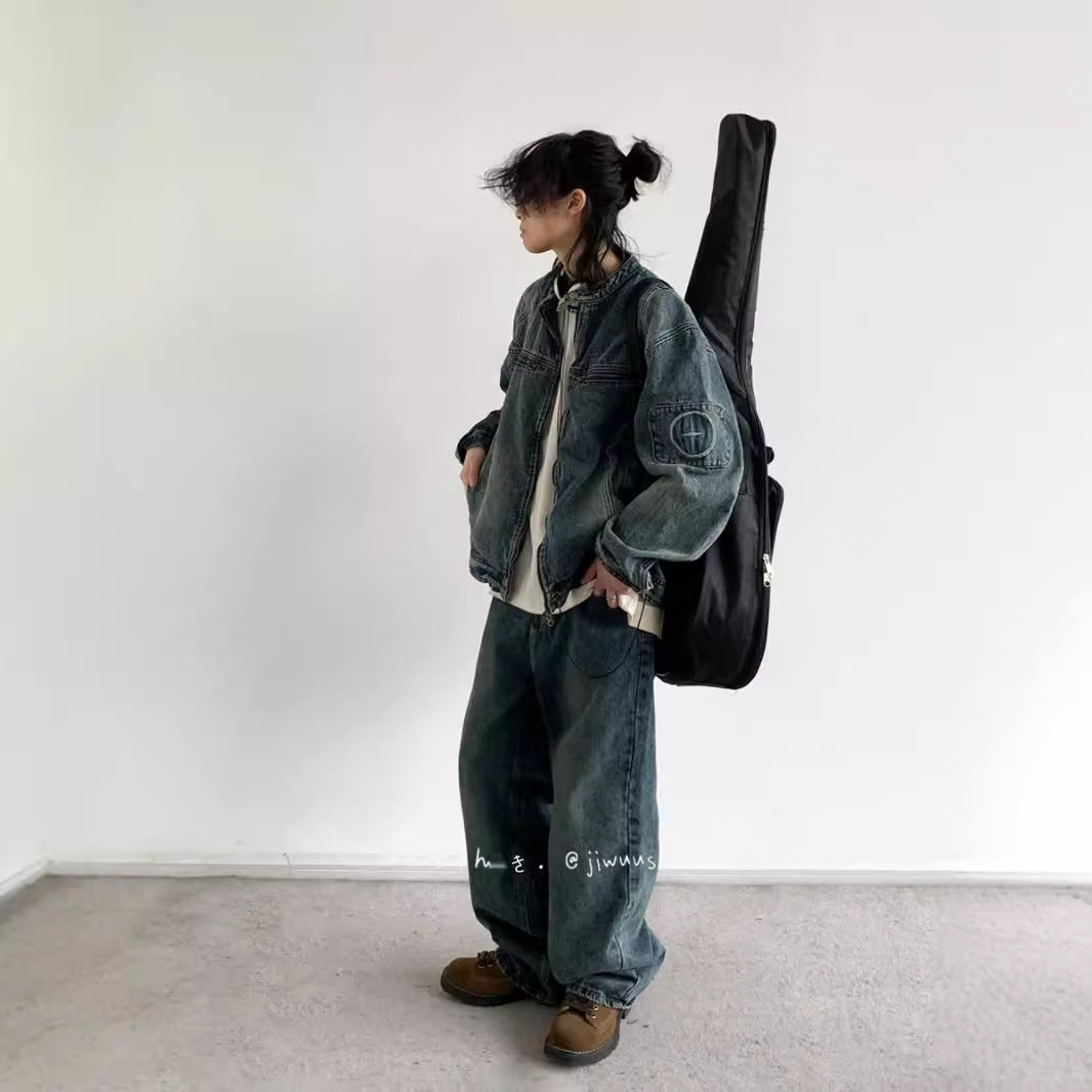 This is a stylish and versatile denim jacket with a relaxed, oversized fit. It features intricate embroidery details on the sleeves, a classic button-down front, and chest pockets. It's a great choice for creating a casual and fashionable look.